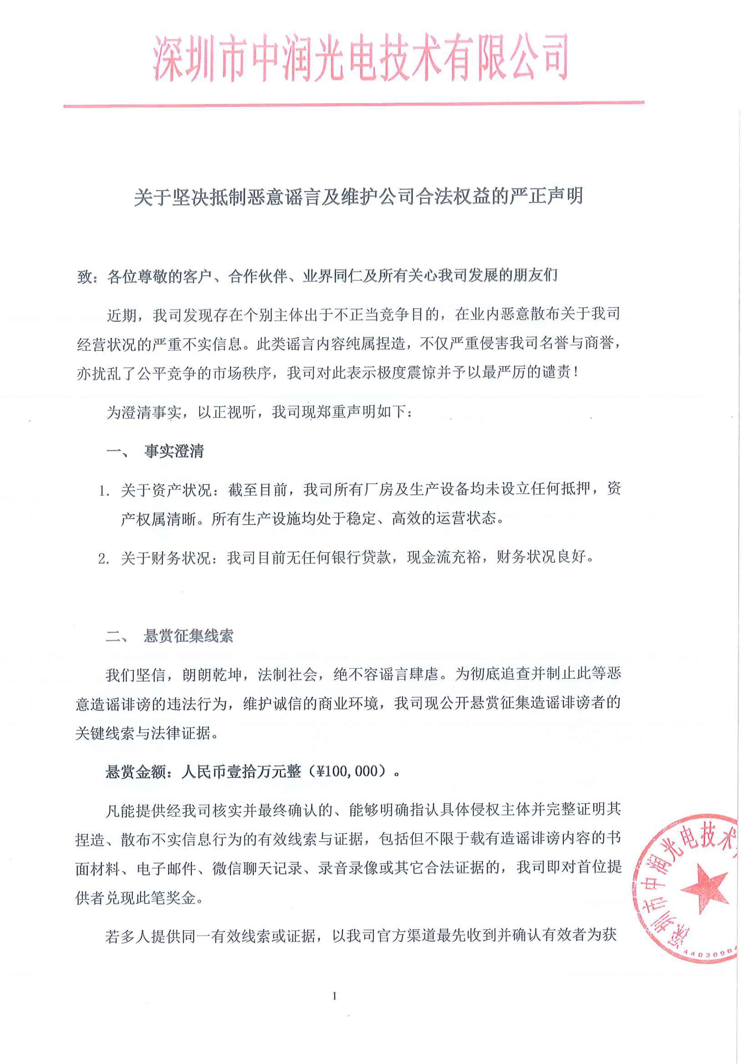 关于坚决抵制恶意谣言及维护公司合法权益的严正声明