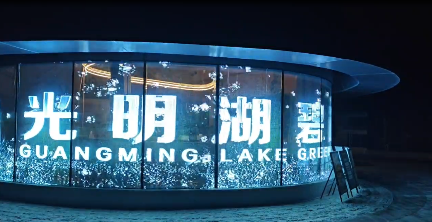如今,在光明湖碧道,中润的全息屏已然成为环境的一部分——它不是科技的强行介入,而是与自然景观的有机共生。屏幕点亮时,信息内容与真实的湖景相互映衬;屏幕熄灭时,它隐身于玻璃之后,将视野完全交还给自然。这正是我们所追求的技术与环境的和谐共生——科技不再突兀,而是成为自然环境中一道低调而精致的背景。